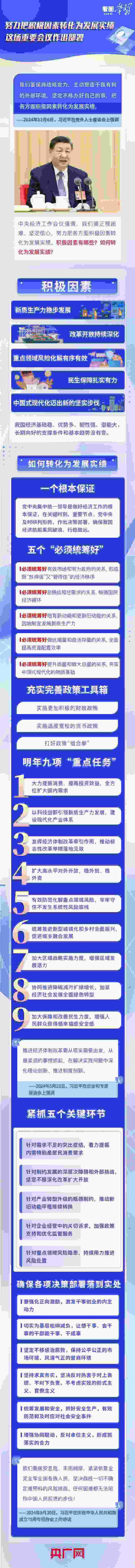 今年是實現(xiàn)“十四五”規(guī)劃目標(biāo)任務(wù)的關(guān)鍵一年。“經(jīng)濟(jì)社會發(fā)展主要目標(biāo)任務(wù)即將順利完成”“一年來的發(fā)展歷程很不平凡,成績令人鼓舞”……此次會議對即將過去的2024年經(jīng)濟(jì)工作作出總結(jié)分析。明年中國經(jīng)濟(jì)怎么干?《看圖學(xué)習(xí)》欄目梳理總書記部分重要論述,結(jié)合中央經(jīng)濟(jì)工作會議要點,與您一起學(xué)習(xí)領(lǐng)悟。