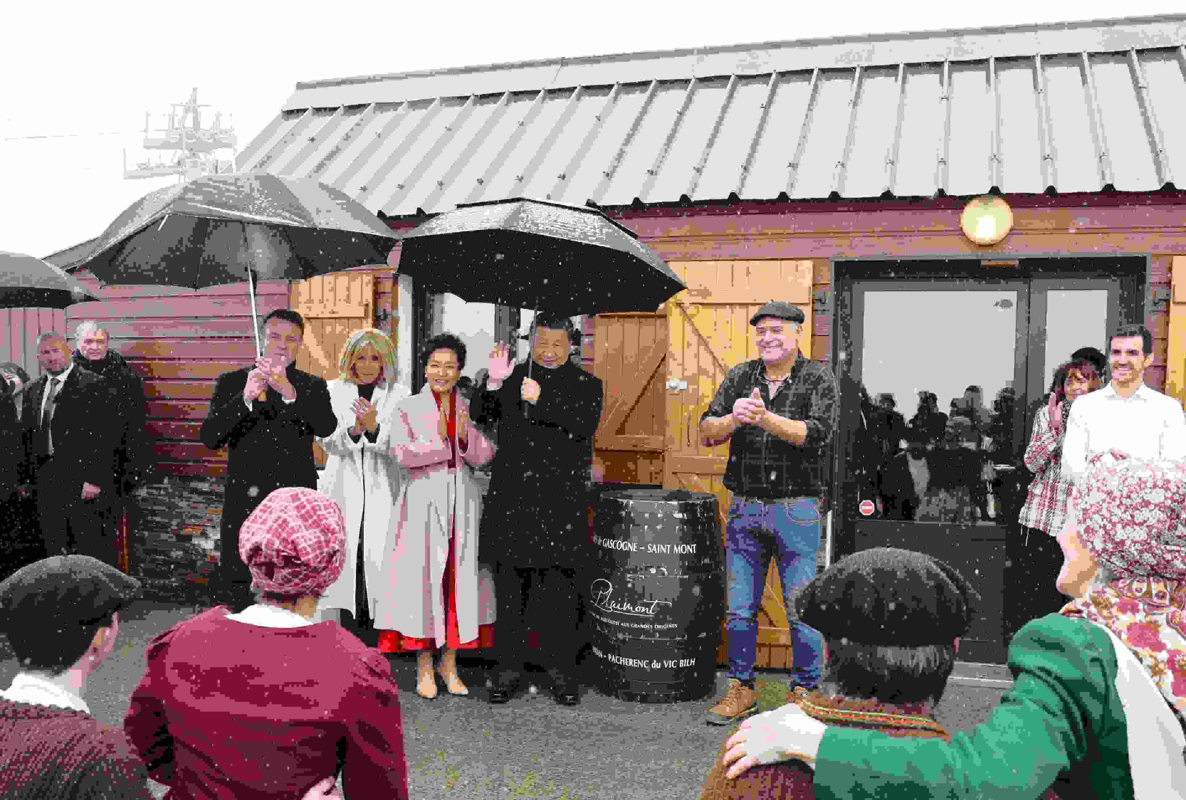 當(dāng)?shù)貢r(shí)間2024年5月7日,應(yīng)法國(guó)總統(tǒng)馬克龍?zhí)貏e邀請(qǐng),國(guó)家主席習(xí)近平乘專(zhuān)機(jī)來(lái)到法國(guó)西南部上比利牛斯省訪(fǎng)問(wèn)。在圖爾馬萊山口“牧羊人驛站”,習(xí)近平和夫人彭麗媛同馬克龍和夫人布麗吉特共同欣賞當(dāng)?shù)卮迕癖硌莸木哂袧庥裟戏L(fēng)情的牧羊人之舞。新華社記者 姚大偉 攝