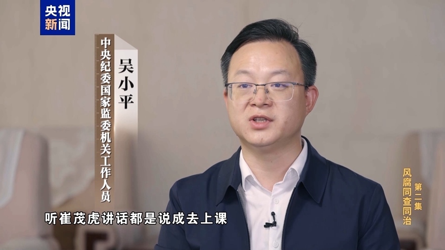 中央紀(jì)委國(guó)家監(jiān)委機(jī)關(guān)工作人員 吳小平:崔茂虎特別能講,講起工作來都是長(zhǎng)篇大論的,所以麗江當(dāng)?shù)匾恍└刹棵看稳ラ_會(huì),聽崔茂虎講話都說成去上課,去聽崔老師講課,實(shí)際上散了會(huì)就開始到別墅里面跟商人老板在一起吃喝玩樂。