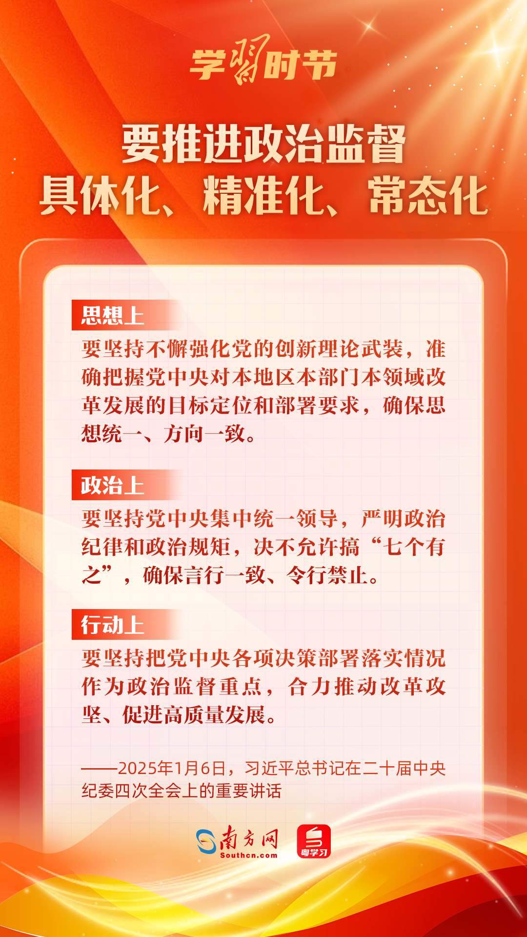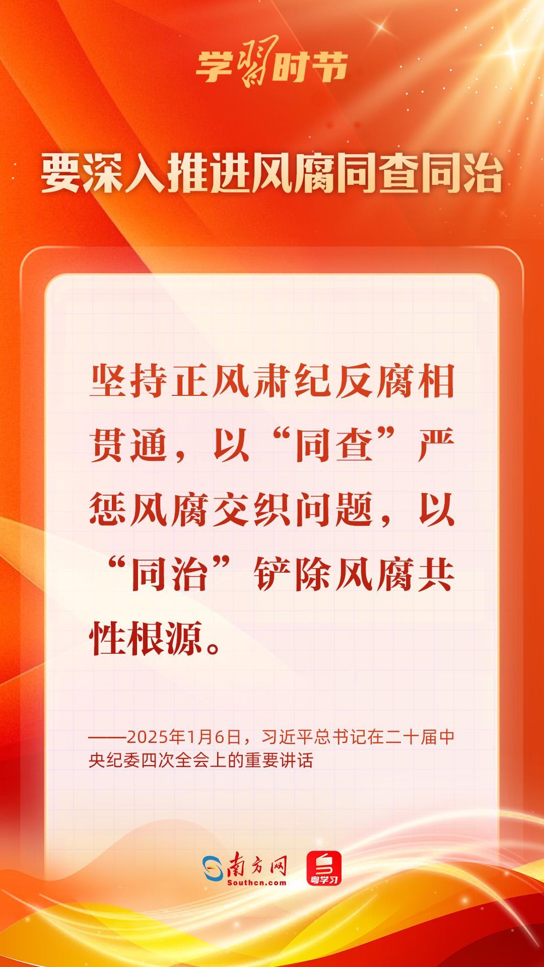 1月6日,中共中央總書記、國(guó)家主席、中央軍委主席習(xí)近平在中國(guó)共產(chǎn)黨第二十屆中央紀(jì)律檢查委員會(huì)第四次全體會(huì)議上發(fā)表重要講話,深刻把握反腐敗斗爭(zhēng)基本規(guī)律,深刻分析當(dāng)前反腐敗斗爭(zhēng)形勢(shì),對(duì)堅(jiān)決打好反腐敗斗爭(zhēng)攻堅(jiān)戰(zhàn)、持久戰(zhàn)、總體戰(zhàn)提出明確要求,對(duì)深入推進(jìn)全面從嚴(yán)治黨作出戰(zhàn)略部署。