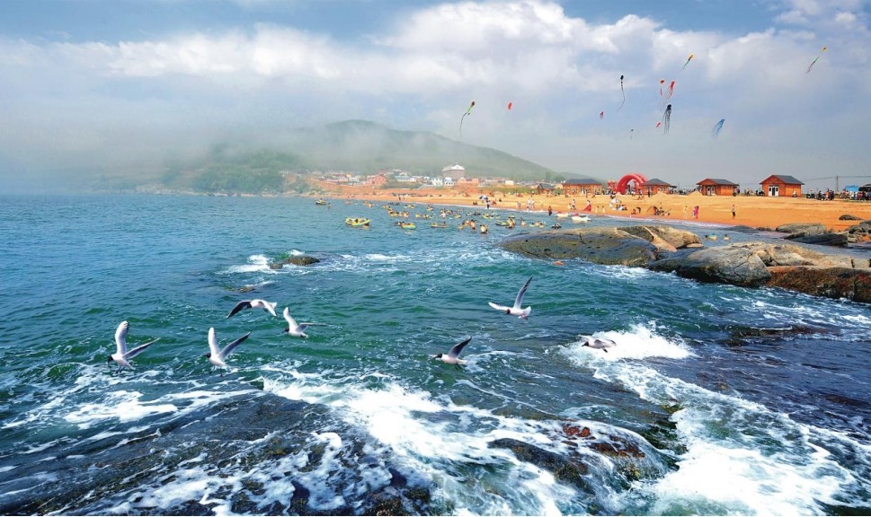 數(shù)九隆冬,位于葫蘆島興城市的三礁攬勝景區(qū)附近海水結(jié)冰。