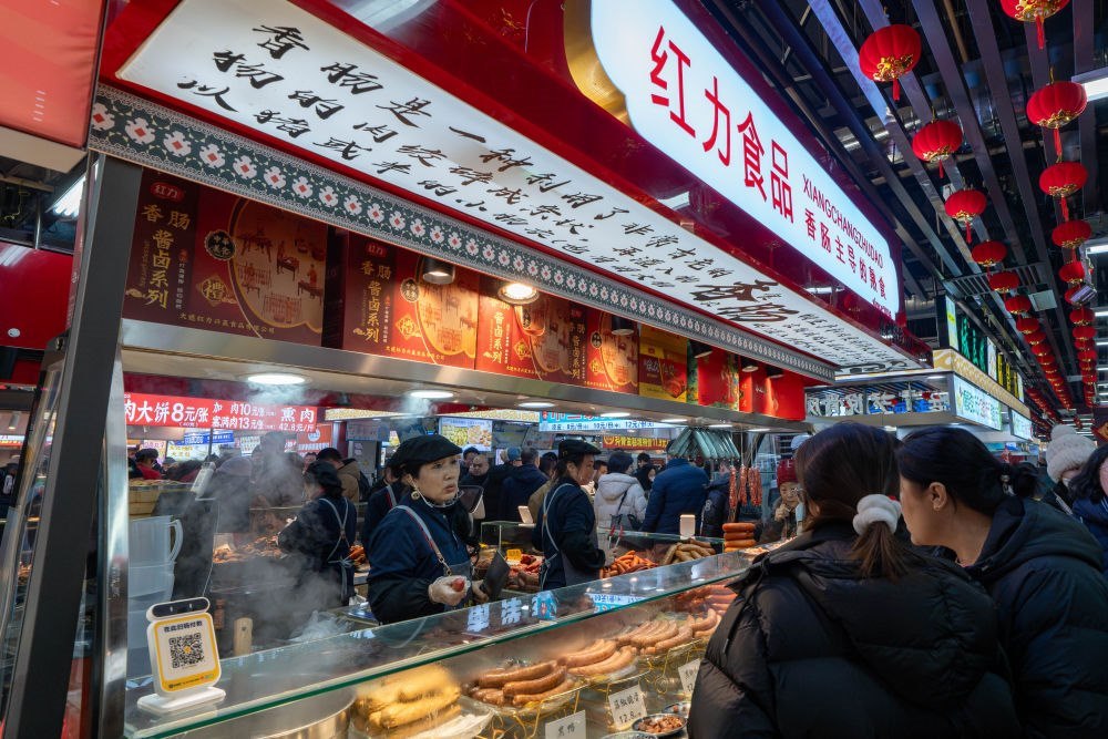 2025年1月22日,游客在沈陽中街長安寺胡同小吃街游玩。