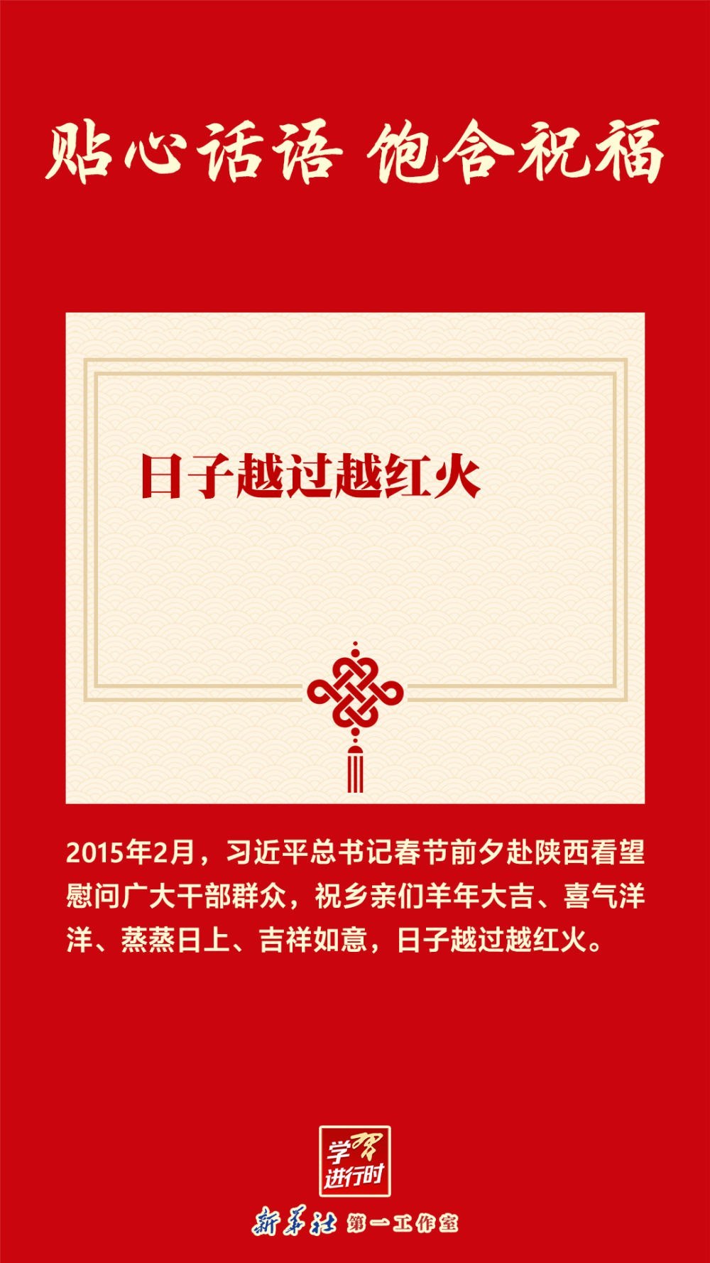 【學(xué)習(xí)進(jìn)行時】拜年是喜慶的年俗之一?;サ酪宦曔^年好,傳遞濃濃親情、友情、同志情。習(xí)近平總書記的貼心話語,充滿溫暖,飽含祝福。
