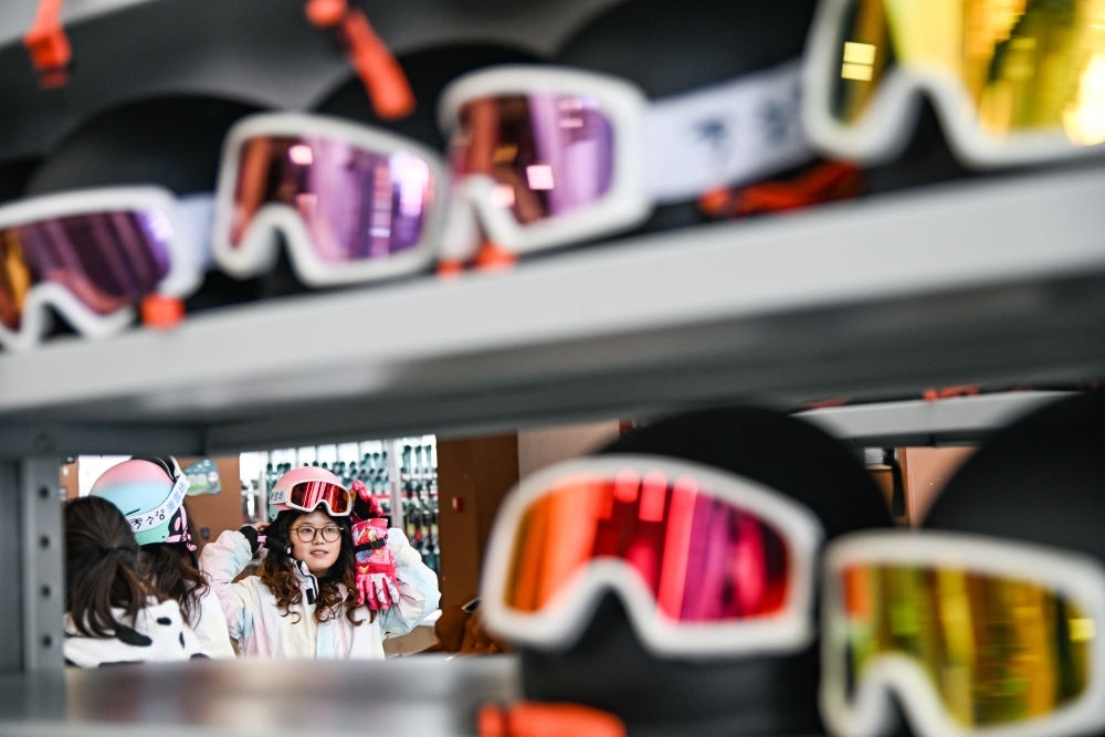 2024年12月27日,滑雪愛好者在四川省阿壩藏族羌族自治州汶川縣羌人谷滑雪場(chǎng)租賃滑雪裝備。