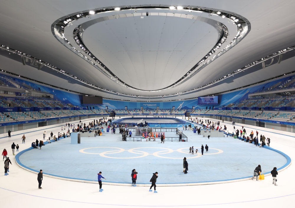 2025年1月4日,游客在國(guó)家速滑館體驗(yàn)滑冰。2024至2025雪季,國(guó)家體育場(chǎng)“鳥巢”歡樂冰雪季、國(guó)家速滑館“冰絲帶”冰雪狂歡季等活動(dòng)相繼開展,吸引了眾多游客。