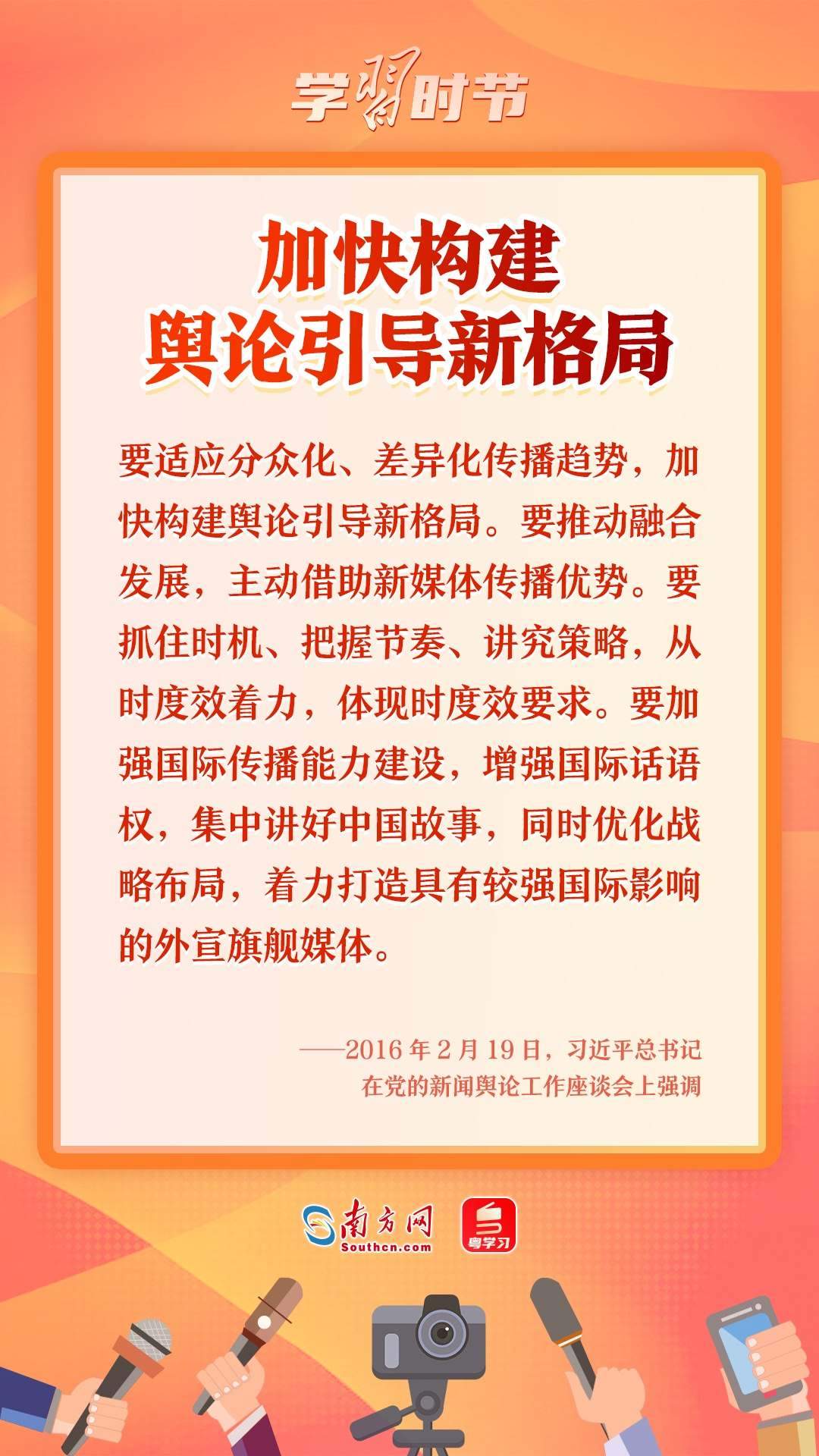 新時代新征程,世界百年未有之大變局加速演進,中華民族偉大復興進入關(guān)鍵時期,戰(zhàn)略機遇和風險挑戰(zhàn)并存,新聞輿論工作的重要性日益突出,復雜性與日俱增。在習近平總書記發(fā)表“2·19”重要講話九周年之際,讓我們重溫習近平總書記對新聞輿論工作的重要論述和重要指示,汲取不斷創(chuàng)新求變、講好中國故事的原動力。