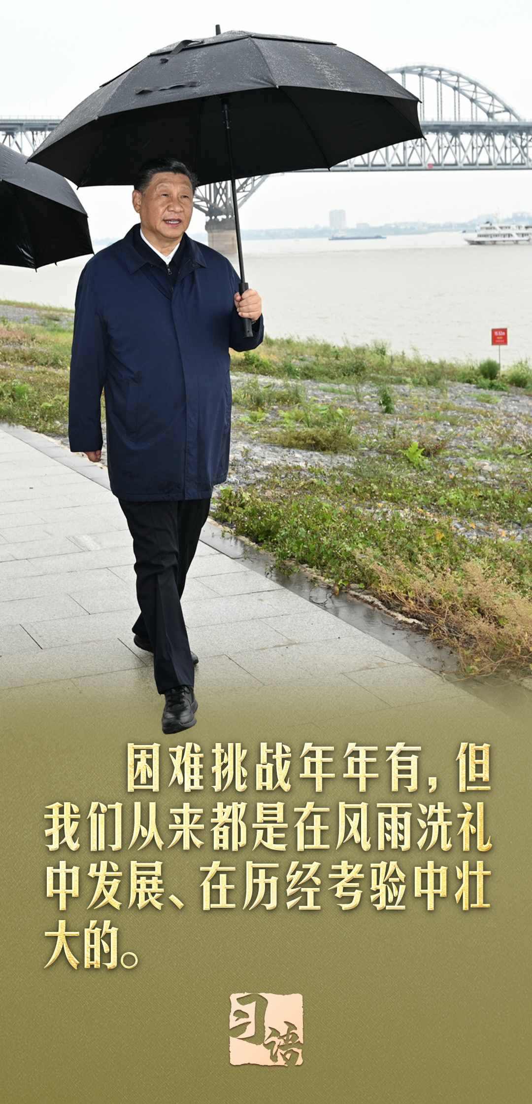 “遵道而行,但到半途須努力;會(huì)心不遠(yuǎn),要登絕頂莫辭勞”。在慶祝中華人民共和國(guó)成立75周年招待會(huì)上,習(xí)近平總書記引用南岳衡山這副對(duì)聯(lián)說(shuō)道:“我們要居安思危、未雨綢繆,緊緊依靠全黨全軍全國(guó)各族人民,堅(jiān)決戰(zhàn)勝一切不確定難預(yù)料的風(fēng)險(xiǎn)挑戰(zhàn)。任何困難都無(wú)法阻擋中國(guó)人民前進(jìn)的步伐!”