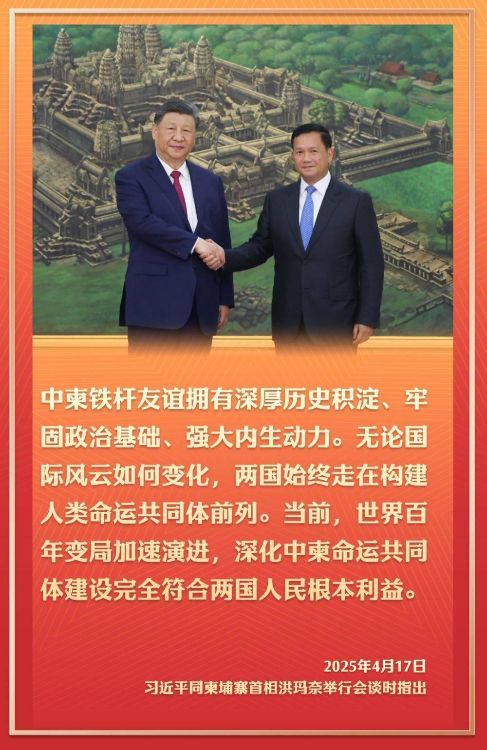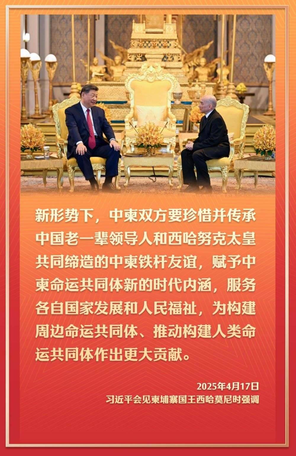 4月17日,應(yīng)柬埔寨國(guó)王西哈莫尼邀請(qǐng),國(guó)家主席習(xí)近平抵達(dá)金邊,開始對(duì)柬埔寨進(jìn)行國(guó)事訪問。