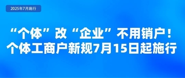 市場(chǎng)監(jiān)管總局近日發(fā)布《個(gè)體工商戶登記管理規(guī)定》,規(guī)定于7月15日起正式施行。規(guī)定明確個(gè)體工商戶可以通過(guò)變更登記方式轉(zhuǎn)型為企業(yè),保留統(tǒng)一社會(huì)信用代碼、成立時(shí)間、名稱(chēng)字號(hào)和相關(guān)行政許可。規(guī)定完善了登記規(guī)則,個(gè)體工商戶經(jīng)營(yíng)場(chǎng)所發(fā)生變化時(shí),可以像企業(yè)一樣辦理跨區(qū)域遷移。規(guī)定還明確了個(gè)體工商戶經(jīng)營(yíng)權(quán)繼承的相關(guān)要求,為老字號(hào)“換人不換招牌”提供制度保障。