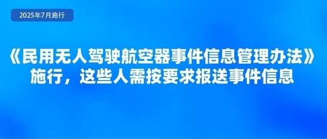 為規(guī)范民用無(wú)人駕駛航空器事件信息的管理,準(zhǔn)確掌握有關(guān)無(wú)人駕駛航空器安全運(yùn)行信息,及時(shí)發(fā)現(xiàn)安全隱患,控制運(yùn)行風(fēng)險(xiǎn),日前,民航局印發(fā)《民用無(wú)人駕駛航空器事件信息管理辦法》,自7月1日起施行?!掇k法》要求,特定類(lèi)和審定類(lèi)合格證持有人、擁有中型和大型無(wú)人駕駛航空器50架(含)以上的開(kāi)放類(lèi)合格證持有人、擁有大型無(wú)人駕駛航空器10架(含)以上的開(kāi)放類(lèi)合格證持有人應(yīng)當(dāng)制定事件信息管理程序,指定滿足條件的人員負(fù)責(zé)事件信息管理,并按要求報(bào)送事件信息。事發(fā)相關(guān)單位和人員應(yīng)當(dāng)按照規(guī)定如實(shí)報(bào)告事件信息,不得瞞報(bào)、謊報(bào)或者遲報(bào)。