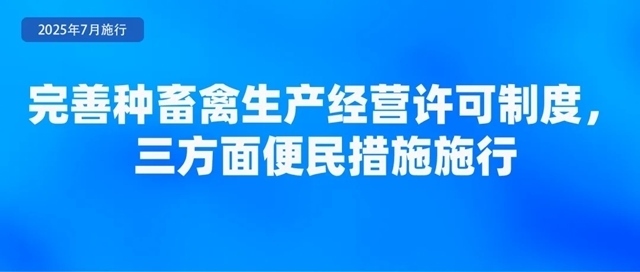農(nóng)業(yè)農(nóng)村部公布了《種畜禽生產(chǎn)經(jīng)營(yíng)許可管理辦法》,于2025年7月1日起實(shí)施?!掇k法》規(guī)定了三方面便民措施。一是統(tǒng)一平臺(tái)辦理。種畜禽生產(chǎn)經(jīng)營(yíng)許可證的申請(qǐng)、受理、審核、核發(fā),統(tǒng)一在中國(guó)種業(yè)大數(shù)據(jù)平臺(tái)辦理,平臺(tái)提供查詢、核驗(yàn)等功能,并與全國(guó)一體化在線政務(wù)服務(wù)平臺(tái)對(duì)接。二是統(tǒng)一有效期。《辦法》將有效期統(tǒng)一確定為5年,并明確已取得的種畜禽生產(chǎn)經(jīng)營(yíng)許可證有效期不變,到期后按照新規(guī)定辦理。三是簡(jiǎn)化變更手續(xù)。對(duì)變更生產(chǎn)經(jīng)營(yíng)者名稱(chēng)、法定代表人(負(fù)責(zé)人)以及從事父母代種畜禽(含品種和配套系)和商品代仔畜、雛禽生產(chǎn)經(jīng)營(yíng),需要變更其生產(chǎn)經(jīng)營(yíng)的畜禽品種的,向原發(fā)證機(jī)關(guān)提交變更申請(qǐng)表及證明材料,符合條件的,原發(fā)證機(jī)關(guān)在十五個(gè)工作日內(nèi)即予以變更。