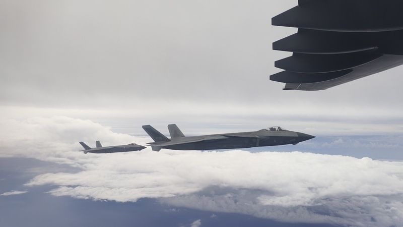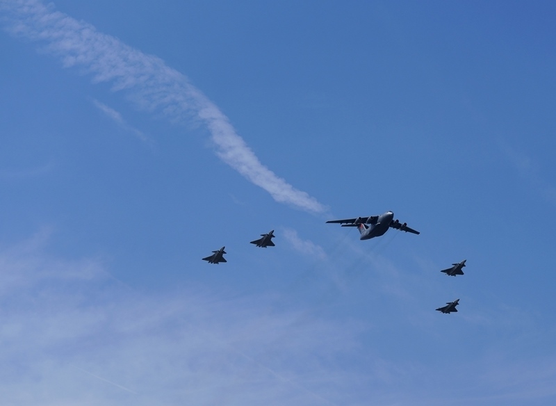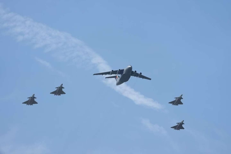 9月12日,第十二批在韓中國人民志愿軍烈士遺骸回國。這是為接運(yùn)烈士遺骸回國的運(yùn)-20專機(jī)伴飛護(hù)航的殲-20飛機(jī)。