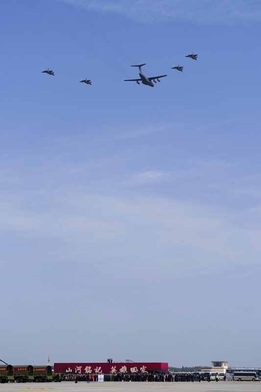 9月12日,第十二批在韓中國人民志愿軍烈士遺骸回國。這是在沈陽桃仙國際機(jī)場(chǎng),接運(yùn)烈士遺骸回國的運(yùn)-20專機(jī)在4架殲-20飛機(jī)伴飛護(hù)航下即將降落。