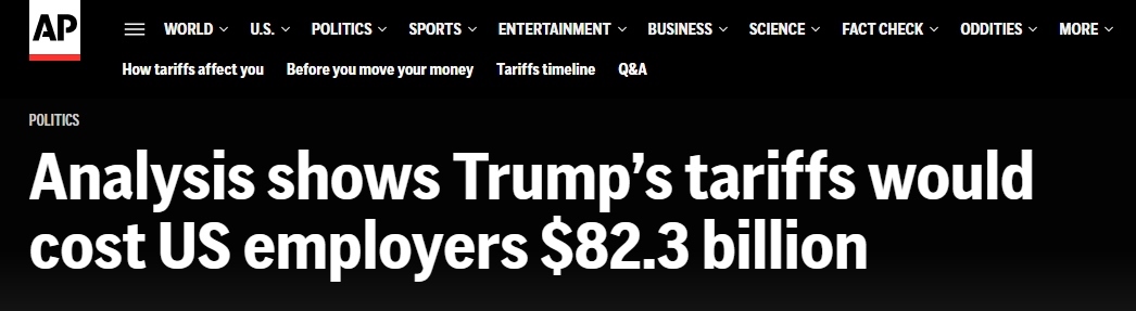 【世界說】摩根大通:關(guān)稅帶來高昂成本 或致美國雇主損失823億美元