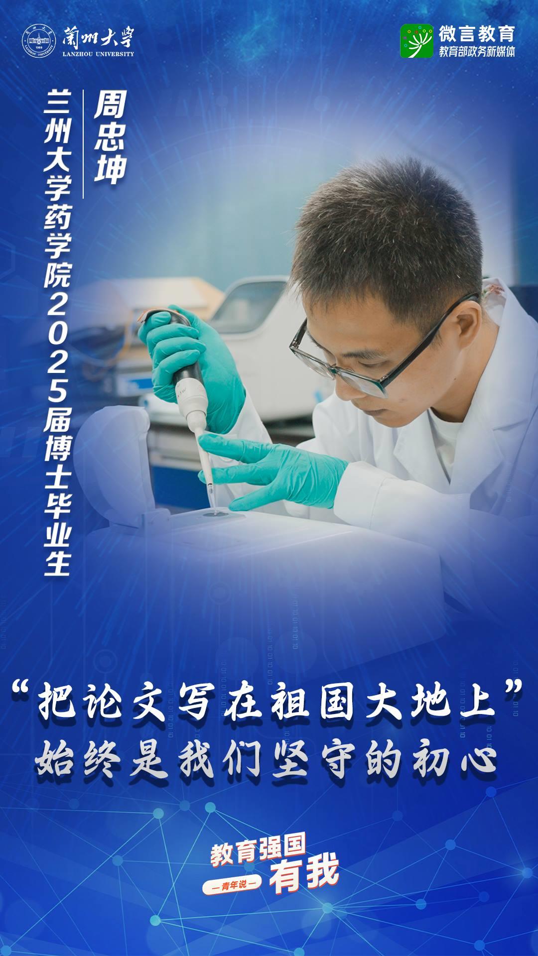 習(xí)近平總書記強(qiáng)調(diào),希望廣大青年堅定理想信念,厚植家國情懷,練就過硬本領(lǐng),發(fā)揚奮斗精神,到祖國和人民最需要的地方發(fā)光發(fā)熱,為中國式現(xiàn)代化建設(shè)貢獻(xiàn)青春力量。教育強(qiáng)國建設(shè),青年何為?教育部政務(wù)新媒體推出“教育強(qiáng)國,有我!”網(wǎng)絡(luò)主題宣傳活動之“青年說(報國篇)”系列,展現(xiàn)青年學(xué)子將個人理想融入國家發(fā)展的青春擔(dān)當(dāng)。今天,跟教育小微通過1個視頻和1組海報,一起來看蘭州大學(xué)學(xué)子如何把論文寫在祖國大地上——
