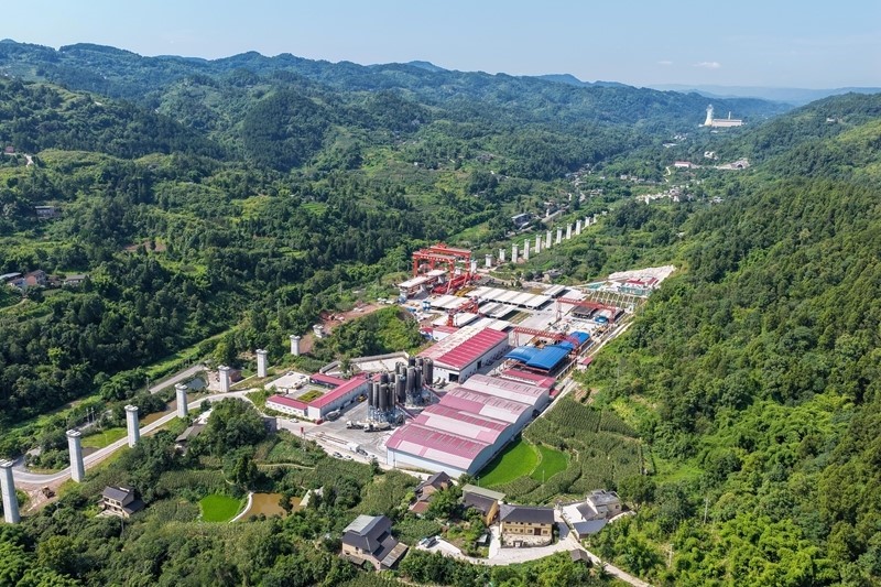 7月5日拍攝的渝萬高鐵江林村特大橋架梁施工作業(yè)現場(無人機照片)。