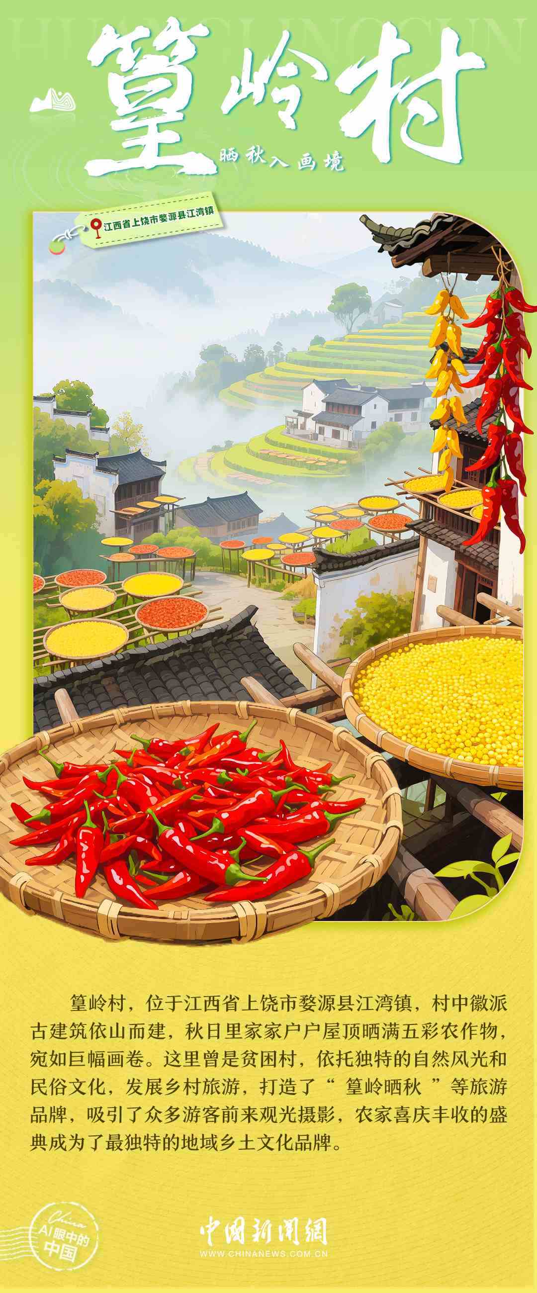 梯田的清晨,竹海的風(fēng),土樓的煙火,古寨的傍晚……中國鄉(xiāng)村正描繪出一幅產(chǎn)業(yè)興旺、生態(tài)宜居、鄉(xiāng)風(fēng)文明的時(shí)代畫卷。每一處風(fēng)景,都是中國鄉(xiāng)村全面振興的生動(dòng)注腳,每一段故事,都是探索全球鄉(xiāng)村發(fā)展路徑的中國實(shí)踐。7月6日,世界農(nóng)村發(fā)展日,讓我們一起走進(jìn)AI視野中的鄉(xiāng)村,去看看美麗中國的勃勃生機(jī)→