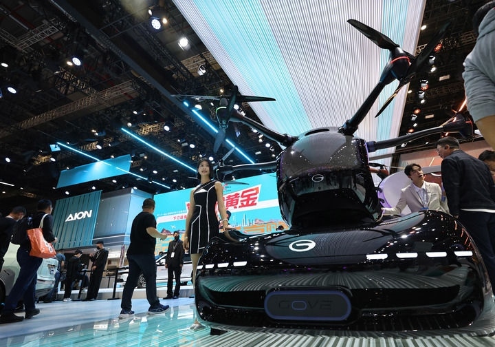 這是在第二十一屆上海國(guó)際汽車工業(yè)展覽會(huì)上拍攝的廣汽傳祺品牌展出的一款飛行汽車(2025年4月25日攝)。新華社記者 方喆 攝