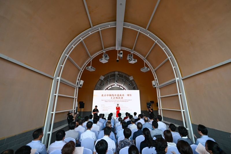 當日,“北京中軸線申遺成功一周年主會場活動”在北京鐘鼓樓廣場舉行?;顒影l(fā)布了《北京中軸線保護傳承三年行動計劃(2025年—2027年)》、《北京中軸線:中國理想都城秩序的杰作》叢書以及《世界文化遺產——北京中軸線》特種郵票等,展現(xiàn)申遺成功一年來,北京中軸線整體性和系統(tǒng)性保護、文化遺產傳承利用、國際交流合作等方面的一系列成果。