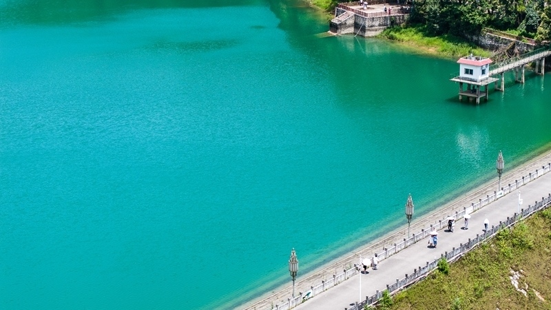 7月30日,游客在瑤池公園棧道上漫步(無人機(jī)照片)。