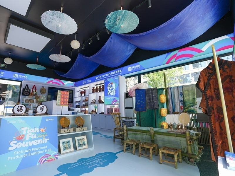 這是8月3日在成都世運會運動員村A區(qū)拍攝的四川特色產(chǎn)品展示展銷館。