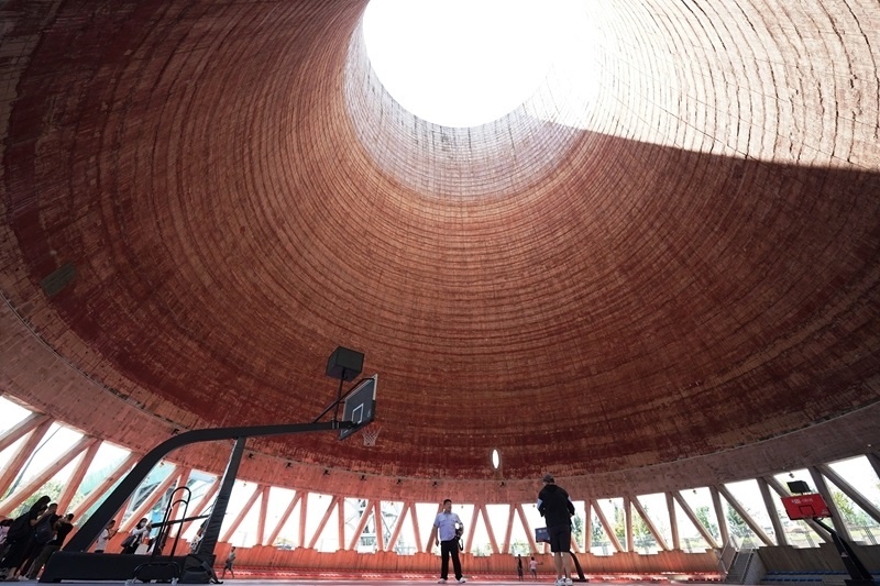 8月11日拍攝的首鋼園冷卻塔“籃球公園”。