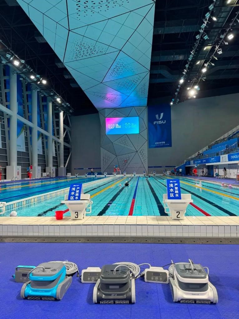 新華社成都8月13日電 (記者劉揚(yáng)濤、孫哲) 成都世運(yùn)會(huì)賽事如火如荼,除了精彩的比賽,賽場(chǎng)內(nèi)外的各類科技設(shè)備同樣引人矚目。泳池清潔機(jī)器人、噴霧降溫系統(tǒng)、智能游泳出發(fā)臺(tái)……在賽事保障服務(wù)的“隱形賽場(chǎng)”上,科技正在重塑運(yùn)動(dòng)體驗(yàn)。