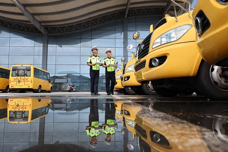 8月25日,江蘇省淮安市公安局洪澤分局交警大隊(duì)民警對(duì)校車進(jìn)行安全檢查。