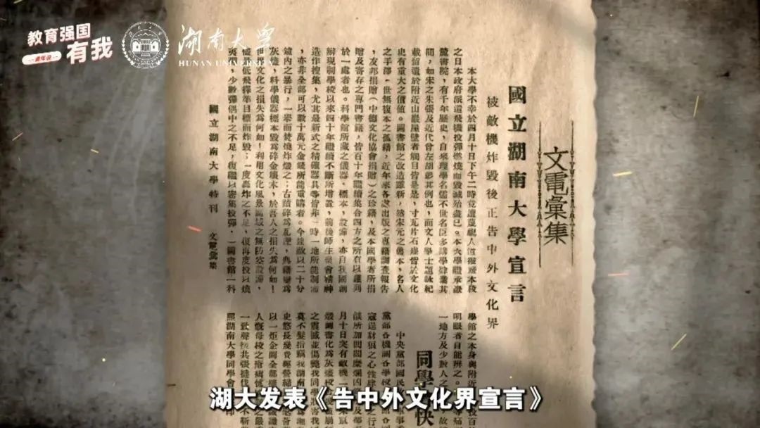 習近平總書記強調(diào),廣大青少年生逢其時,要賡續(xù)紅色血脈,樹立強國有我的遠大志向,做堂堂正正、光榮自豪的中國人,勇?lián)褡鍙团d的時代大任。2025年是中國人民抗日戰(zhàn)爭暨世界反法西斯戰(zhàn)爭勝利80周年,教育部政務新媒體推出“教育強國,有我!”網(wǎng)絡主題宣傳活動之“青年說·傳承篇”系列,挖掘高校里的紅色記憶,展現(xiàn)青年師生的時代擔當。今天,跟教育小微通過1個微視頻和1個故事,共同回顧湖南大學師生英勇抗戰(zhàn)的烽火歲月——