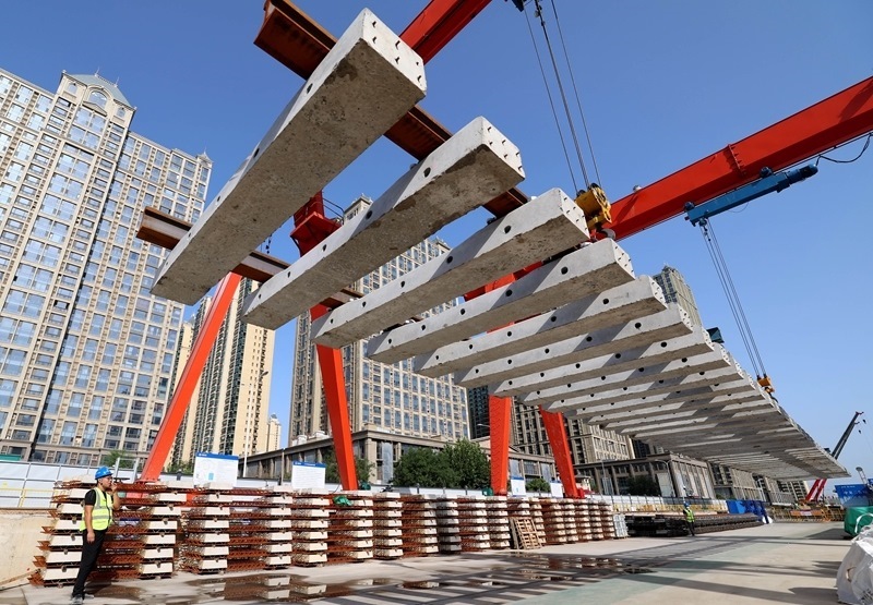 9月7日,工人在石家莊地鐵4號(hào)線一期工程?hào)|垣東路站建設(shè)工地施工。
