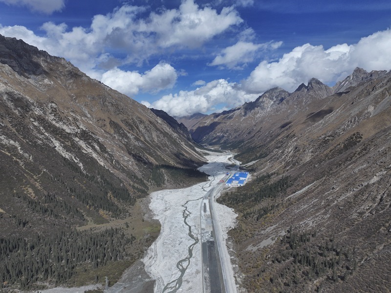 這是10月5日在新疆昭蘇縣拍攝的昭溫公路西天山特長(zhǎng)隧道進(jìn)口端及附近施工現(xiàn)場(chǎng)(無人機(jī)照片)。該隧道為全線關(guān)鍵控制性工程,全長(zhǎng)15.707千米,由北向南穿越天山山脈。