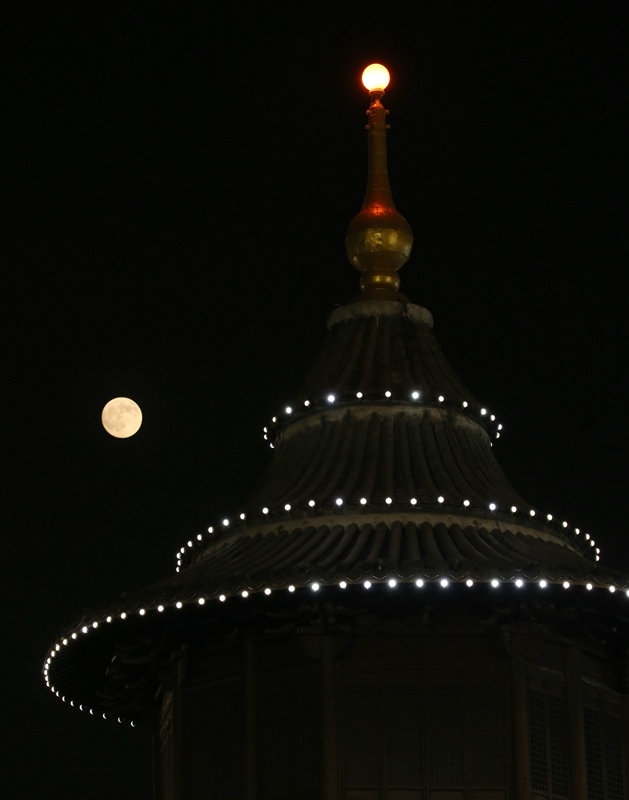 這是10月6日在北京故宮角樓附近拍攝的月亮。