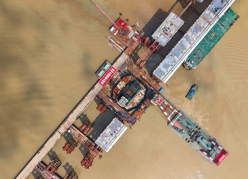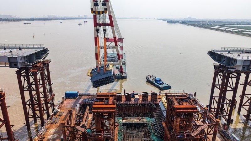 10月10日,由中鐵建大橋局承建的萬(wàn)龍大橋吊裝架設(shè)首節(jié)段主塔。位于廣州南沙區(qū)的萬(wàn)龍大橋跨越珠江口龍穴南水道,全長(zhǎng)5146米,主橋長(zhǎng)1150米,主跨608米,為粵港澳大灣區(qū)又一世界級(jí)橋梁。