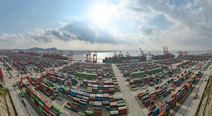 2024年12月18日拍攝的洋山港(無(wú)人機(jī)全景照片)。新華社記者 方喆 攝