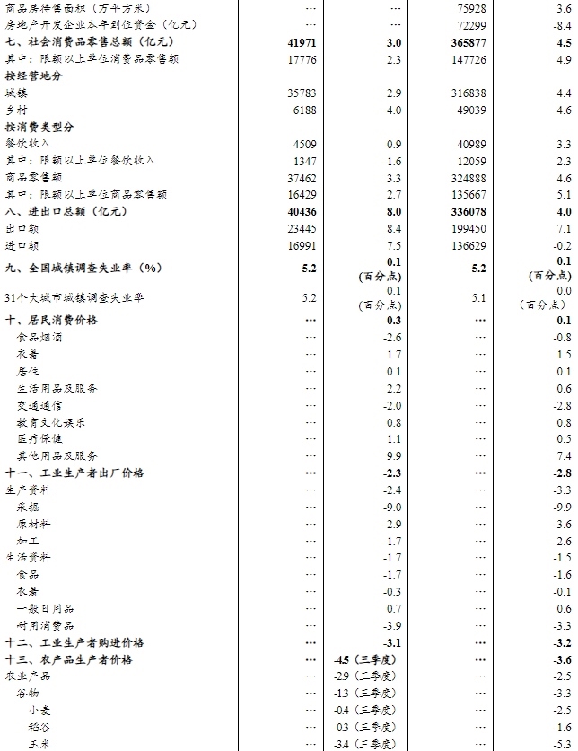 總的來看,前三季度穩(wěn)就業(yè)穩(wěn)經(jīng)濟政策舉措接續(xù)發(fā)力,主要宏觀指標總體平穩(wěn),經(jīng)濟運行保持穩(wěn)中有進態(tài)勢,高質(zhì)量發(fā)展取得積極成效。也要看到,當(dāng)前經(jīng)濟運行仍面臨不少風(fēng)險挑戰(zhàn),外部不穩(wěn)定不確定因素較多,國內(nèi)經(jīng)濟回升向好基礎(chǔ)仍需加力鞏固。下階段,要堅持以習(xí)近平新時代中國特色社會主義思想為指導(dǎo),全面貫徹落實黨中央決策部署,堅持穩(wěn)中求進工作總基調(diào),推動更加積極有為的宏觀政策落地增效,著力穩(wěn)就業(yè)、穩(wěn)企業(yè)、穩(wěn)市場、穩(wěn)預(yù)期,扎實推動高質(zhì)量發(fā)展,促進經(jīng)濟持續(xù)健康發(fā)展。