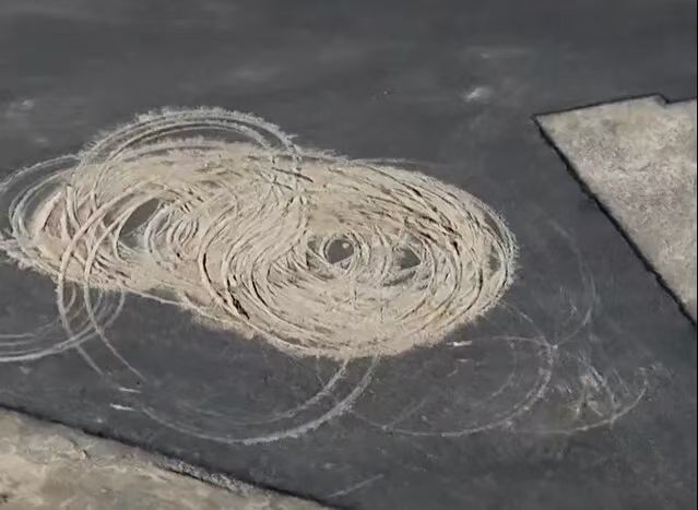 然而,近段時(shí)間以來,一些人穿越戈壁荒漠,來到這里玩漂移,留下了一個(gè)個(gè)刺眼的痕跡。尤其是在“人民”二字中間,漂移痕跡尤為嚴(yán)重,從空中俯瞰令人痛心。許多網(wǎng)友直言,這不僅是對戈壁景觀的破壞,更是對歷史和先輩的褻瀆。