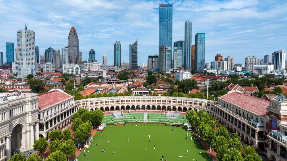 這是8月28日拍攝的位于天津五大道歷史文化街區(qū)的民園廣場(無人機(jī)照片)。新華社記者 趙子碩 攝