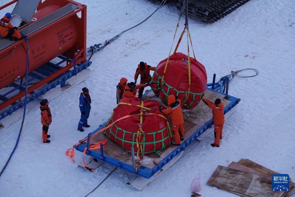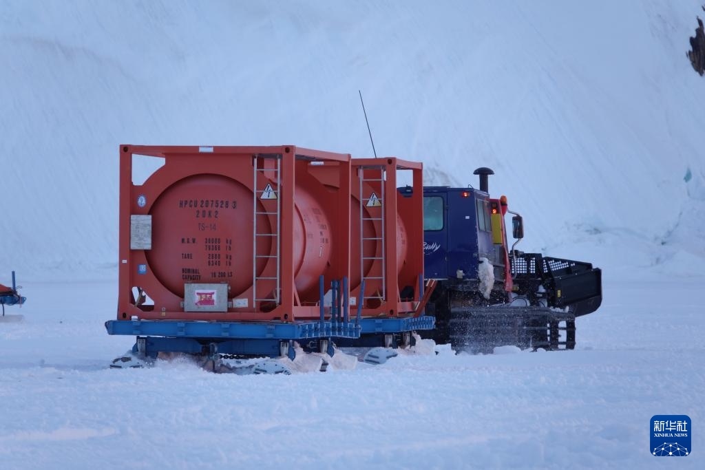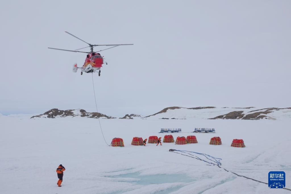 據(jù)悉,“雪龍2”號(hào)正采取“白天空吊、夜晚冰運(yùn)”的節(jié)奏開(kāi)展物資和燃油卸運(yùn),白天利用直升機(jī)吊掛油囊,夜間趁低溫海冰承載力較好時(shí)開(kāi)展冰面車(chē)輛雪橇運(yùn)輸。