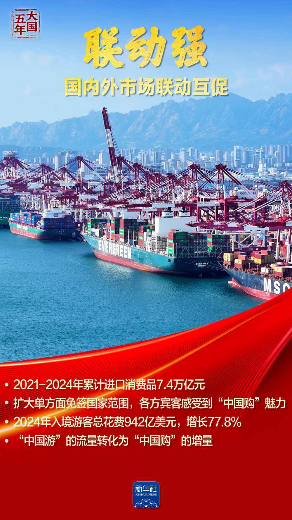 這五年,“智能”“綠色”煥新潮涌,國風(fēng)文創(chuàng)、數(shù)字消費勾勒品質(zhì)生活新圖景;服務(wù)消費快速增長折射結(jié)構(gòu)優(yōu)化;“中國機遇”惠及世界,“中國市場”成為共享市場。跟隨海報,共同見證超大規(guī)模市場蘊藏的磅礴底氣,感受提振內(nèi)需釋放的澎湃動力。