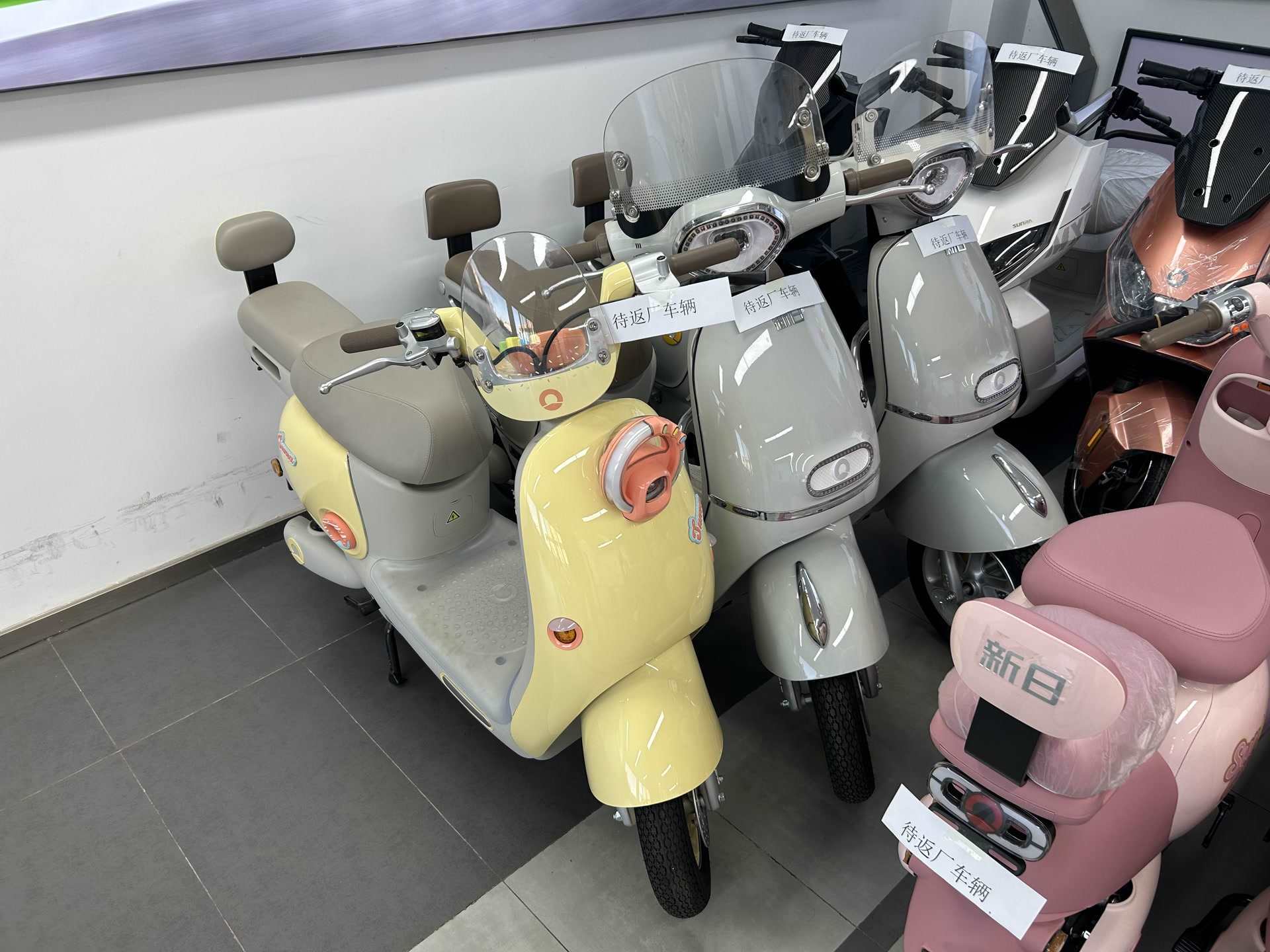 新日電動車店,擺著不少待返廠的老國標車