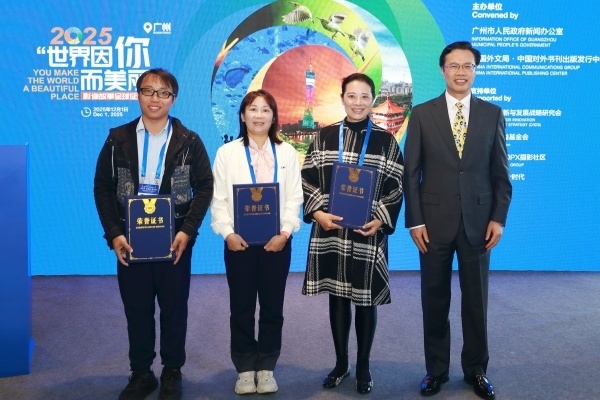 12月1日,2025“世界因你而美麗·廣州”影像故事全球征集活動(dòng)優(yōu)秀作品展暨創(chuàng)作分享會(huì)在2025年“讀懂中國(guó)”國(guó)際會(huì)議(廣州)期間舉行。中國(guó)外文局副局長(zhǎng)余應(yīng)福,廣州市委宣傳部副部長(zhǎng)、市文明辦主任鮑煒,中國(guó)國(guó)家創(chuàng)新與發(fā)展戰(zhàn)略研究會(huì)副會(huì)長(zhǎng)、中國(guó)中共黨史學(xué)會(huì)常務(wù)理事王曉鳴出席活動(dòng)并致辭。中國(guó)外文局副總編輯、中國(guó)對(duì)外書(shū)刊出版發(fā)行中心主任陳實(shí)出席活動(dòng)。來(lái)自中國(guó)、法國(guó)、巴西、塔吉克斯坦等國(guó)近30名中外籍創(chuàng)作者參與分享交流。