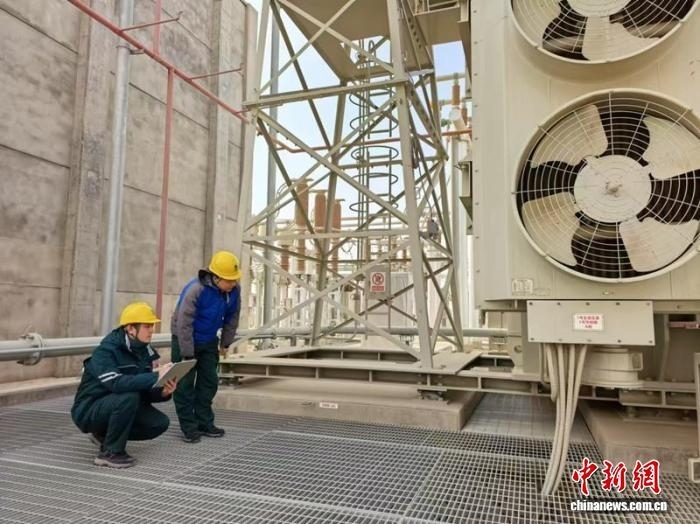 國(guó)網(wǎng)新疆超高壓分公司員工在750千伏喀什變電站開展地震后特巡。國(guó)網(wǎng)新疆電力有限公司供圖