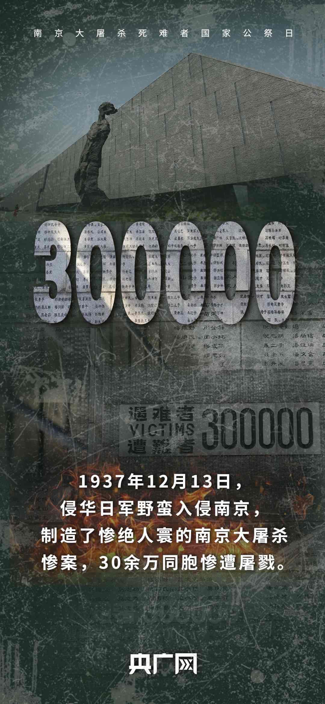 今天(12月13日)是第十二個(gè)南京大屠殺死難者國家公祭日。88年前,侵華日軍制造了慘絕人寰的南京大屠殺,這是一場持續(xù)40多天的人間浩劫,30多萬同胞罹難……每一個(gè)數(shù)字,都在提醒著我們,曾經(jīng)的血與淚,不能忘,不敢忘!銘記歷史,珍愛和平,吾輩自強(qiáng)!