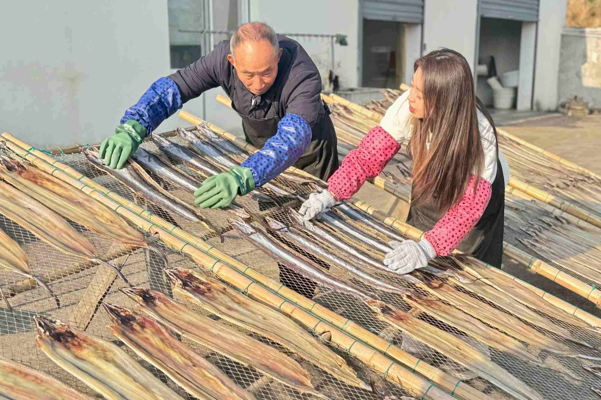 該廠生產(chǎn)的鰻魚(yú)、馬鮫魚(yú)、魷魚(yú)、黃魚(yú)、蝦等鲞類產(chǎn)品,在北京、上海、南京等城市供不應(yīng)求,年銷(xiāo)售額超過(guò)500萬(wàn)元。以前靠鹽和陽(yáng)光保存海鮮的老手藝,現(xiàn)在還融入了智能化烘干、真空包裝等現(xiàn)代技術(shù),魚(yú)鲞保質(zhì)期延長(zhǎng)至半年以上,通過(guò)電商平臺(tái)銷(xiāo)往全國(guó)各地,從“農(nóng)家特產(chǎn)”升級(jí)為“網(wǎng)紅爆款”。
