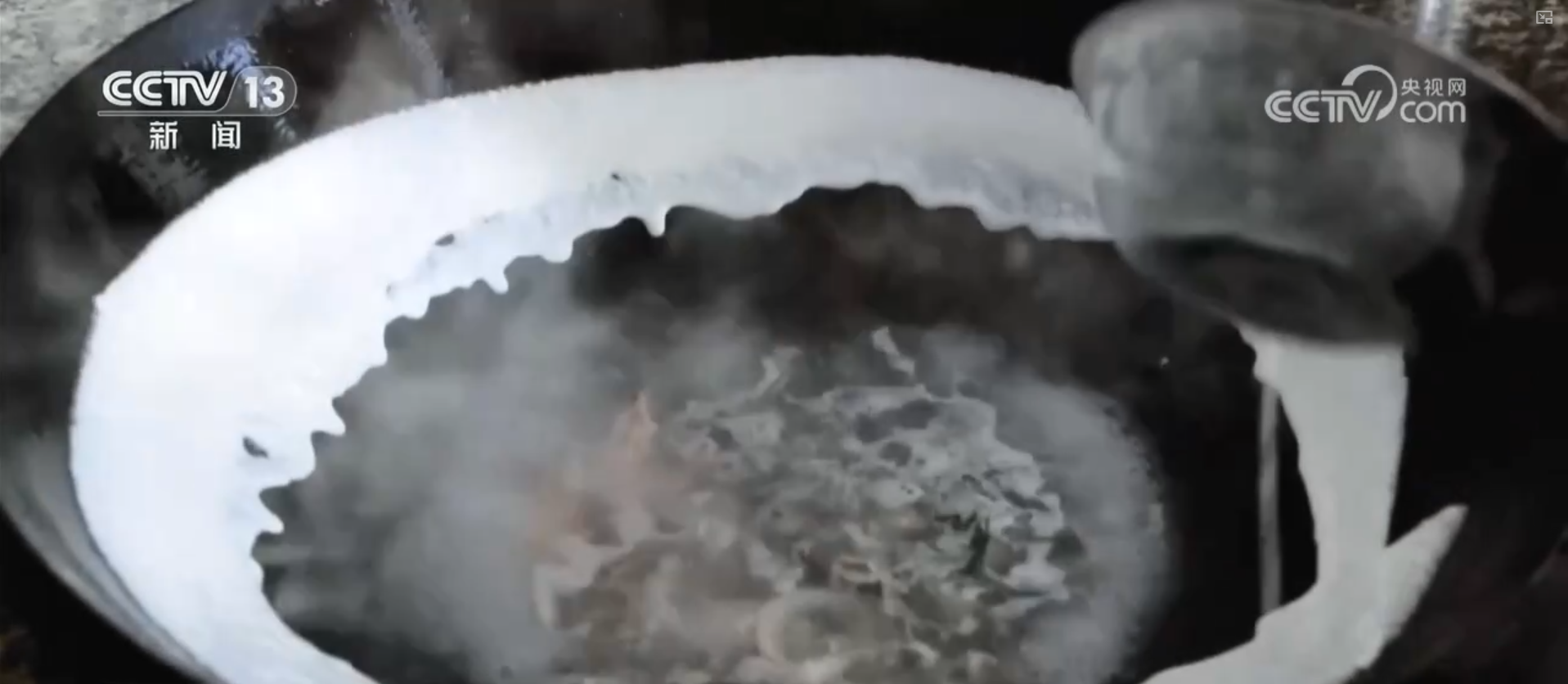 鍋邊的制作并不復(fù)雜,以高湯為底,加入蝦米、紫菜、干貝、香菇、蟶干、魚干等食材共同熬煮。之所以叫“鍋邊”,是因為制作時,要把大米磨成的米漿沿著燒熱的鍋的邊緣順時針澆上一圈。而作為鍋邊的“靈魂”,米漿的制作可有大講究。