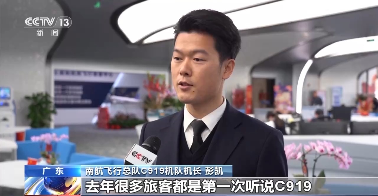 南航飛行總隊C919機(jī)隊機(jī)長 彭凱:去年很多旅客都是第一次聽說C919,今年可能有些不一樣,很多旅客已經(jīng)主動選乘去拍照打卡這個機(jī)型了。