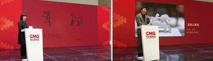 在“馬元素展示”環(huán)節(jié),北京大學(xué)、上海外國語大學(xué)的專家分別圍繞總臺春晚主標(biāo)識“騏驥馳騁”和中埃兩國博物館的豐富館藏,現(xiàn)場分享中華文明與古埃及文明中馬元素的文化意象與精神意蘊。