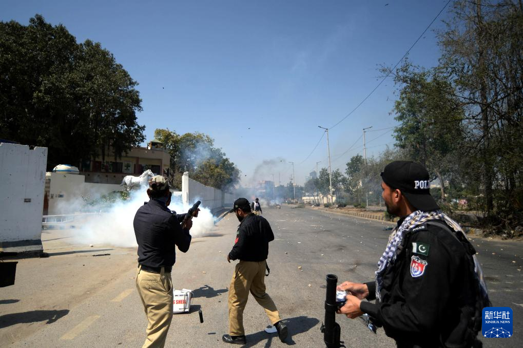 3月1日,在巴基斯坦南部城市卡拉奇的美國(guó)駐卡拉奇領(lǐng)事館附近,警察向抗議人群發(fā)射催淚瓦斯。