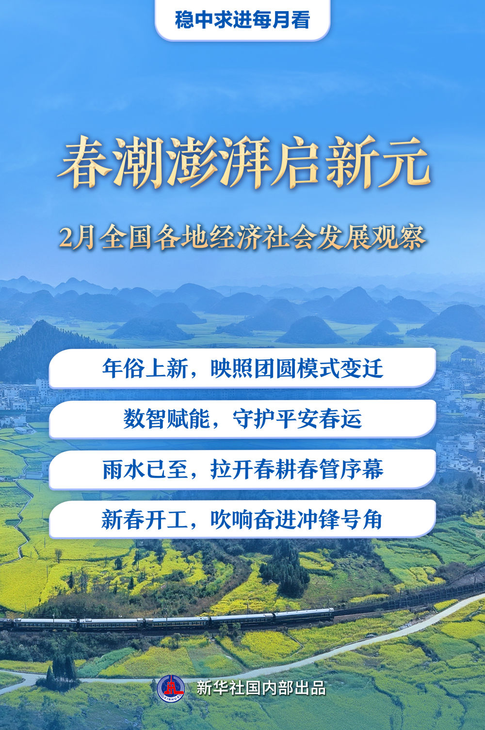 佳節(jié)歡騰,“異地過年”成流行趨勢;春運大潮,奏響“流動中國”的團圓篇章;雨水時節(jié),春耕春播春管拉開序幕;新春開工,各地吹響奮進號角……2月以來,全國各地經(jīng)濟社會發(fā)展呈現(xiàn)“春意盎然”的新圖景。