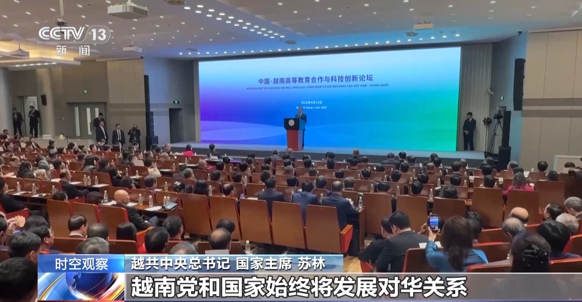 越共中央總書記 國家主席 蘇林:越南和中國都進入了各自新的發(fā)展機遇期。中國剛剛通過了“十五五”規(guī)劃,為中國新的發(fā)展階段開啟了新的篇章。越南也正在落實越共十四大的決議,為越南下一個階段更高的發(fā)展目標努力奮斗。因此我認為我們兩黨兩國都要加強合作,要加強戰(zhàn)略對接,共同謀求發(fā)展。